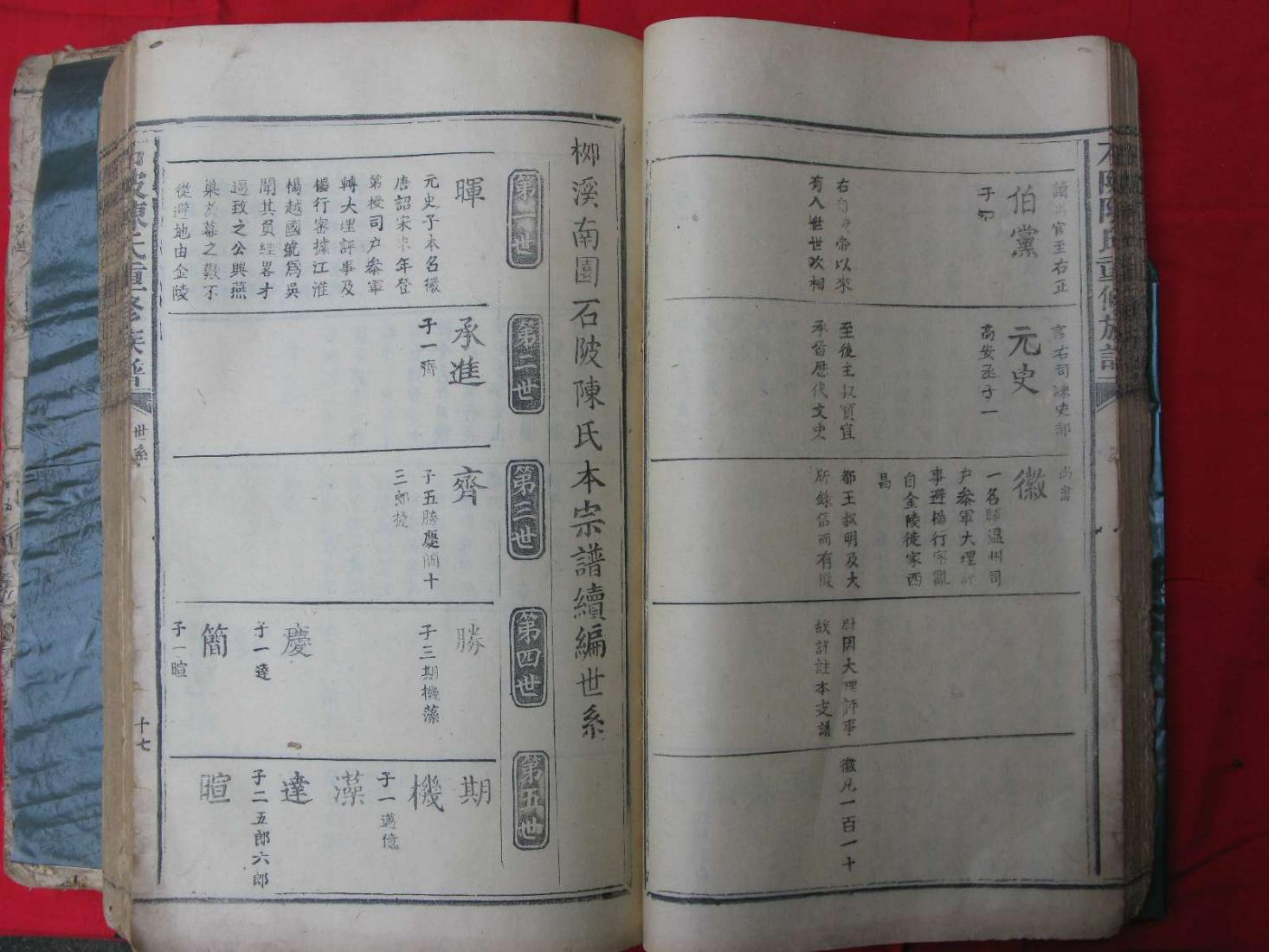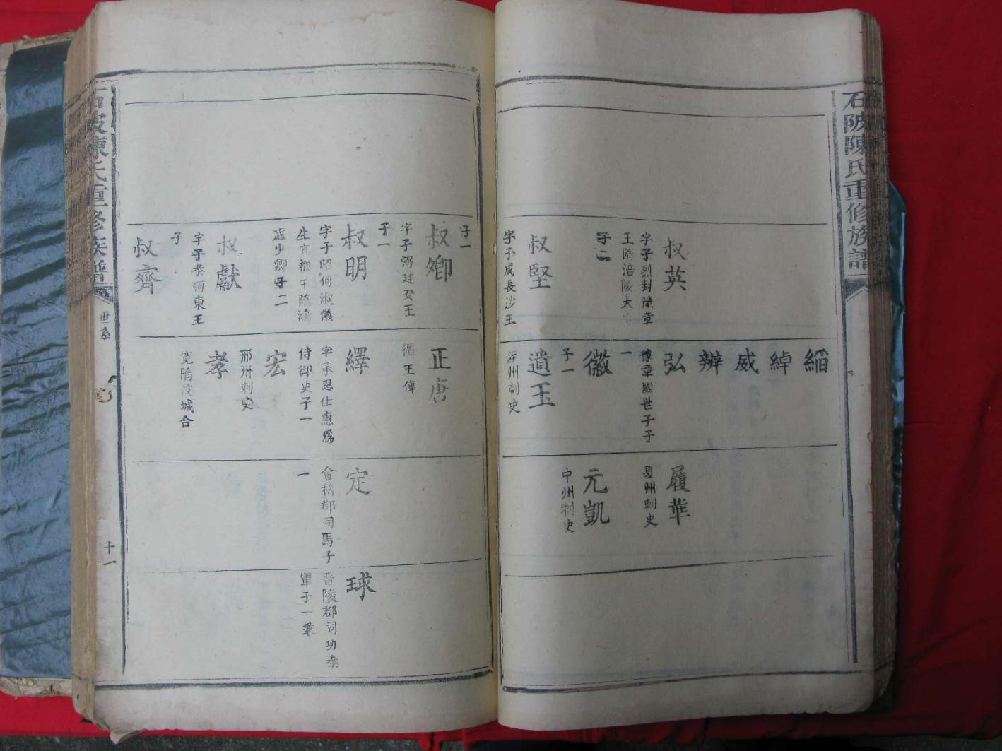 谱中记载:叔明五世孙陈兼,十世孙伯宣,伯宣子陈崇。很明显,这是宜都王叔明公一脉传下来的,是果石庄的直系。